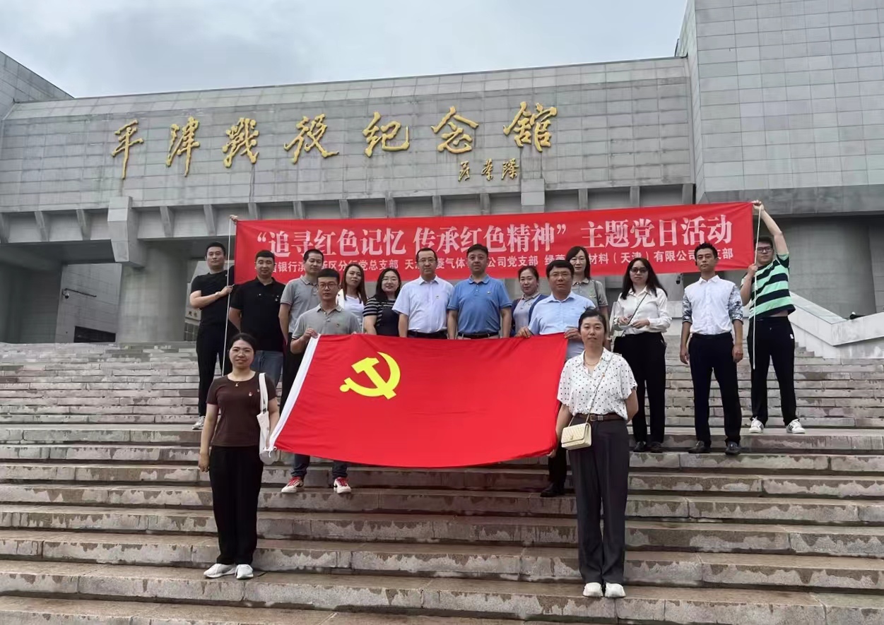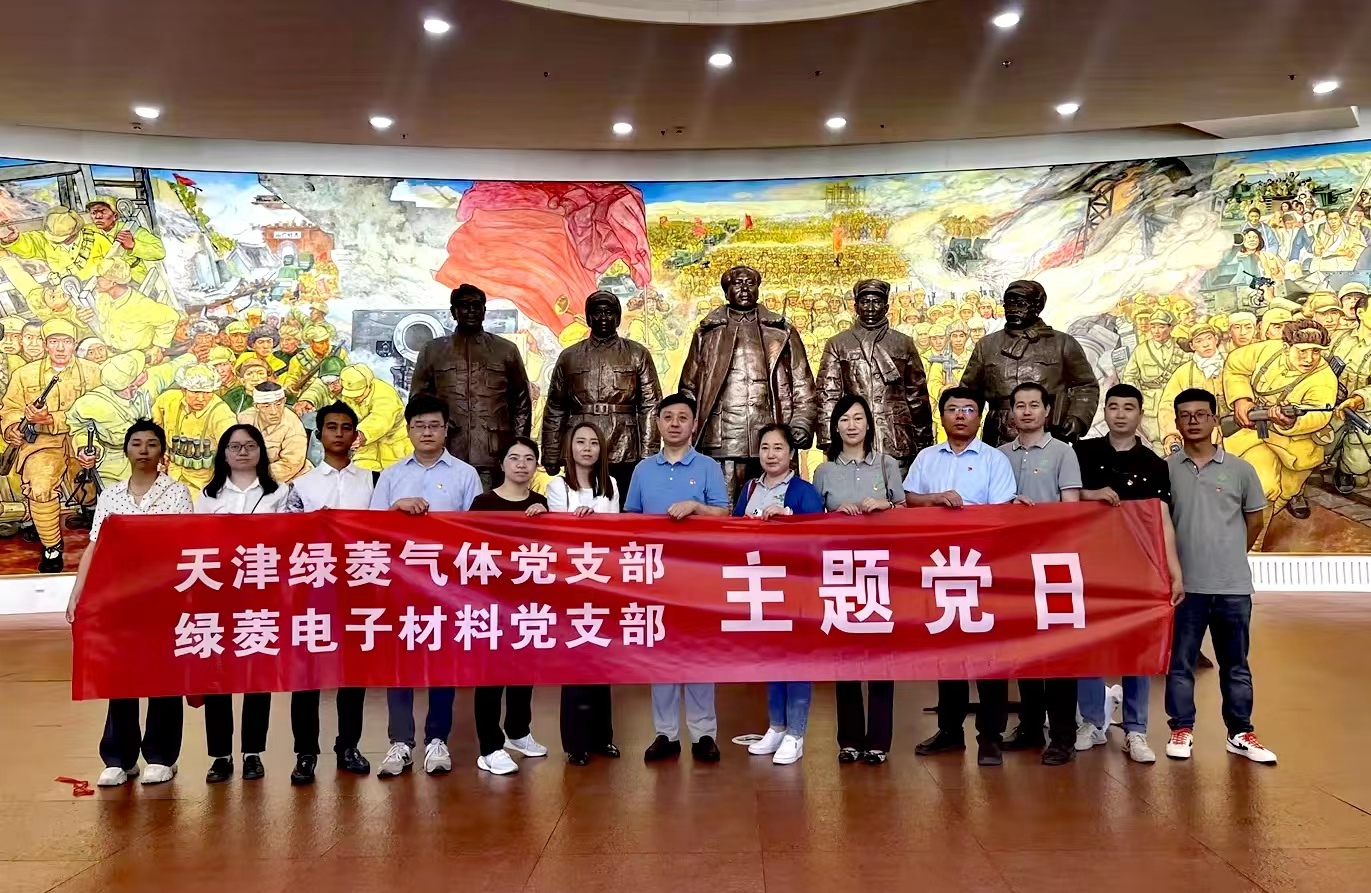 2023年7月29日,綠菱氣體公司黨支部、綠菱電子材料公司黨支部聯合中信銀行濱海新區分行黨總支部,在平津戰役紀念館開展以“追尋紅色記憶,傳承紅色精神”為主題的黨日活動。三個支部的二十余名黨員和入黨積極分子代表參加了活動。