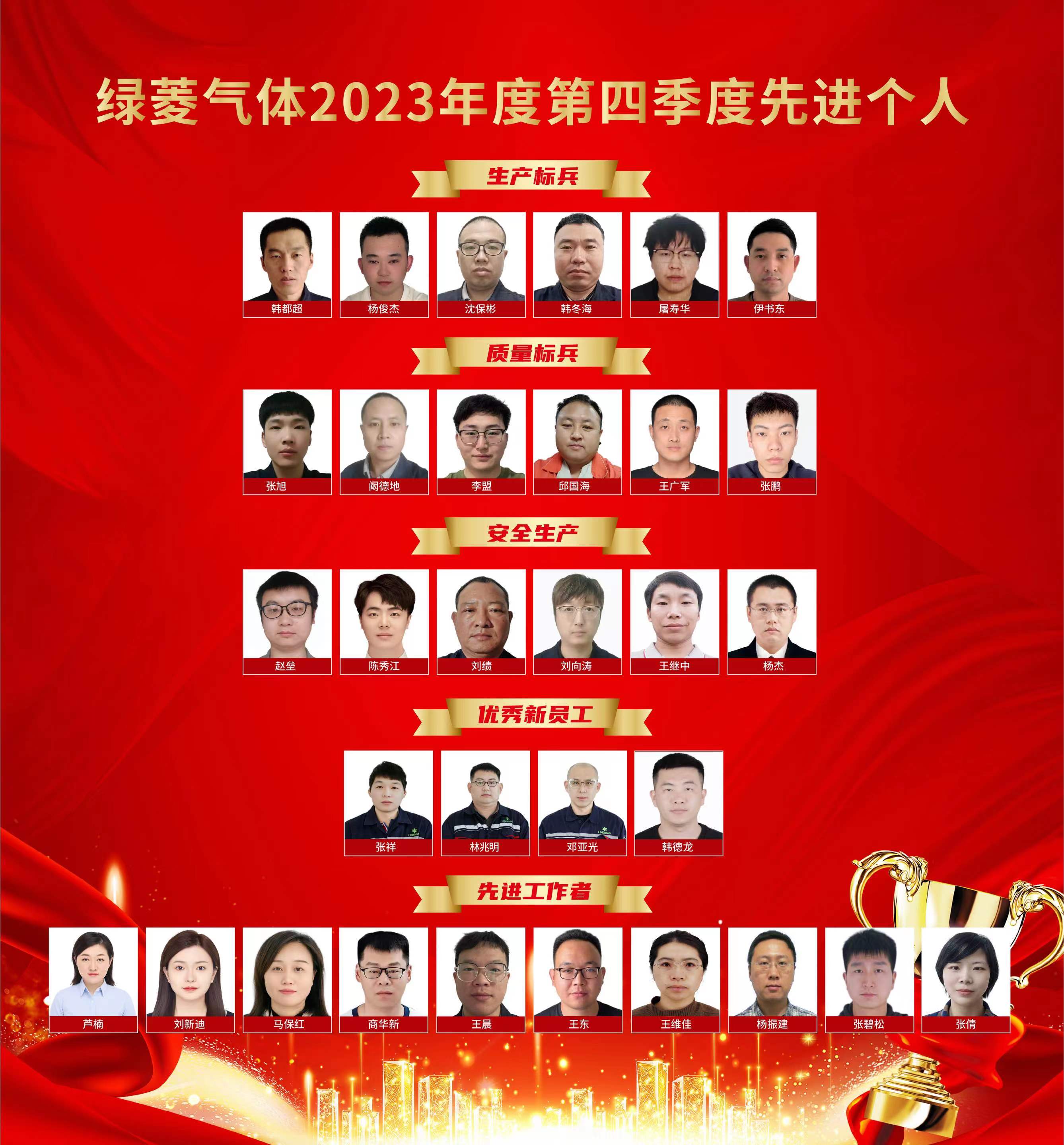 豪情歡歌辭舊歲,喜氣開篇迎新年,2024年2月2日,正是北方的小年,綠菱氣體公司在武清生產基地、南港生產基地舉辦以“蓄力生長,聚力共行,乘風破浪,龍騰四海”為主題的2024年工作會議,為了表彰2023年各條戰線涌現出的先進集體和個人,公司隆重舉辦2023年四季度優秀員工和年度先進集體、員工度表彰大會。